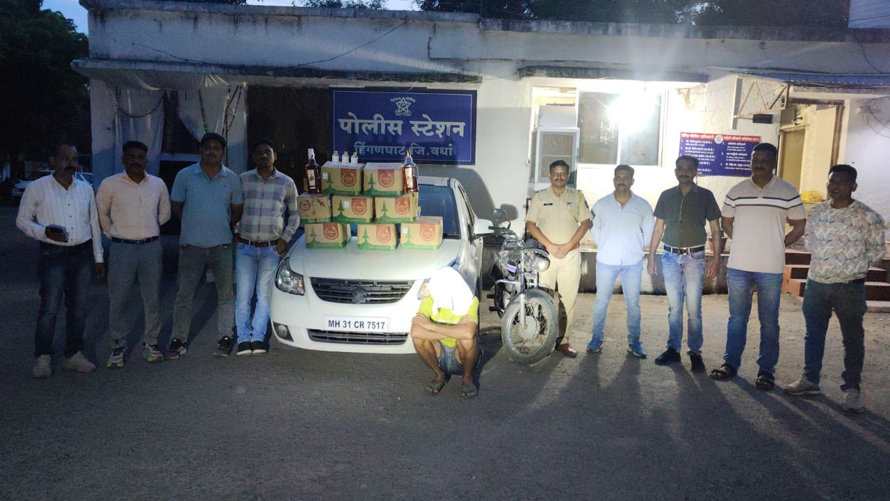 हिंगणघाट(वर्धा)प्रतिनिधी) – याबाबत सवीस्तर व्रुत्त असे की,सर्व प्रकारचे अवैध धंदे यांचेवर कडक कार्यवाही करण्याचे पोलिस अधिक्षक अनुराग जैन यांचे आदेशाचे अनुषंगाने पोलिस  स्टेशन हिंगणघाट येथील डी बी  पथकाचे अंमलदार हे पोस्टे परिसरात दि. 03/08/2025 रोजी पेट्रोलिंग करीत असतांना खबरी कडुन खात्रीशीर गोपनीय माहीती  मिळाली की, अजय हजारे नावाचा इसम हा त्याचे ताब्यातील मारूती सुझूकी एसएक्स 4 चारचाकी वाहनाने अवैद्यरित्या देशी दारूचा माल घेवून नंदोरी ते हिंगणघाट रोडने वाघसावली येथे येणार आहे,